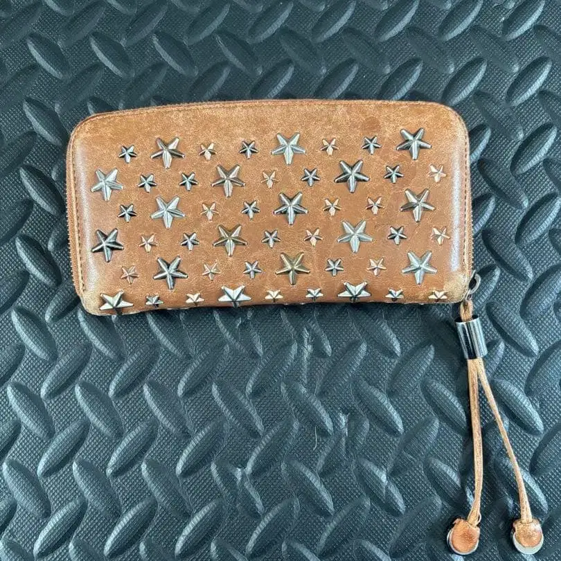 지미추 별 모양 스터드 장식 브라운 장지갑
