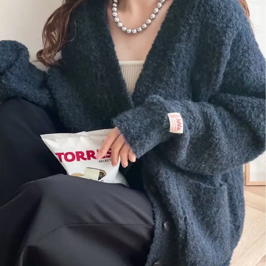 JaVa 자바 부클레 V넥 가디건 새상품!