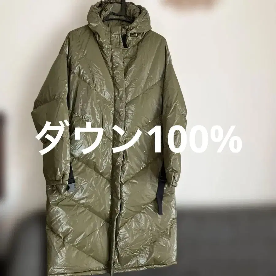 ALYSI 올리브 그린 다운 100% 롱 코트