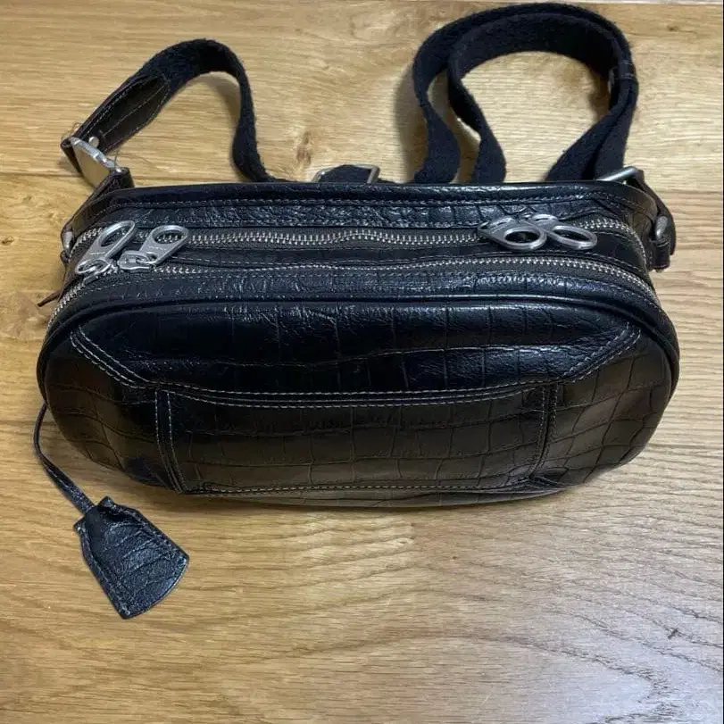아니아리 악어 엠보싱 바디백 더블 지퍼 블랙 가죽 2층