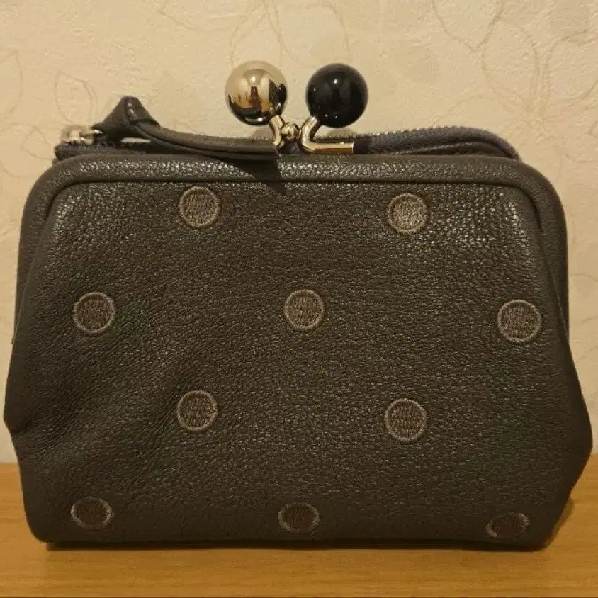 perche 천연 가죽 다크 그레이 도트 무늬 접이식 지갑