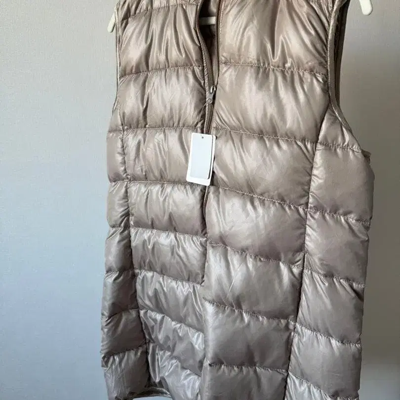 베이지 퀼팅 다운 베스트 후드 부착