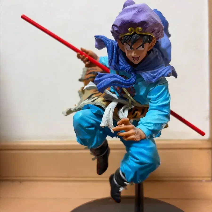 방 안에 장식해 두었습니다. 외부 박스는 없습니다. 눈에 띄는 흠집이나 얼룩은 없지만, 받침대에 일부와 피규어와의 연결 부분에 약간 하얗게 흠집 같은 것이 있으므로 이미지로 판단해 주시면 감사하겠습니다. (조립 시 지장은 없습니다.) 부속물인 여의봉이 포함되어 있습니다.