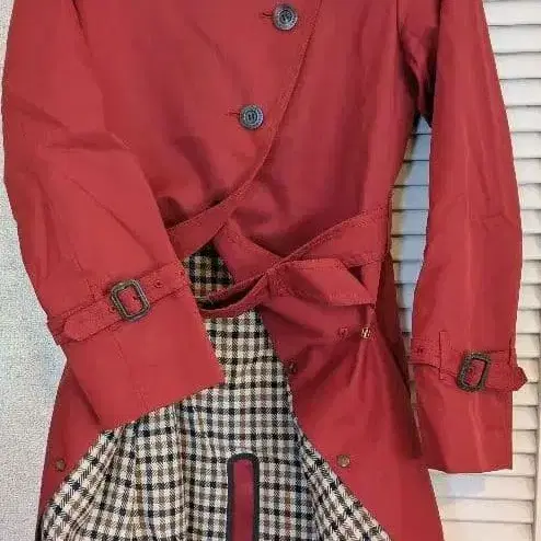 체크 무늬 안감이 특징인 트렌치코트입니다.