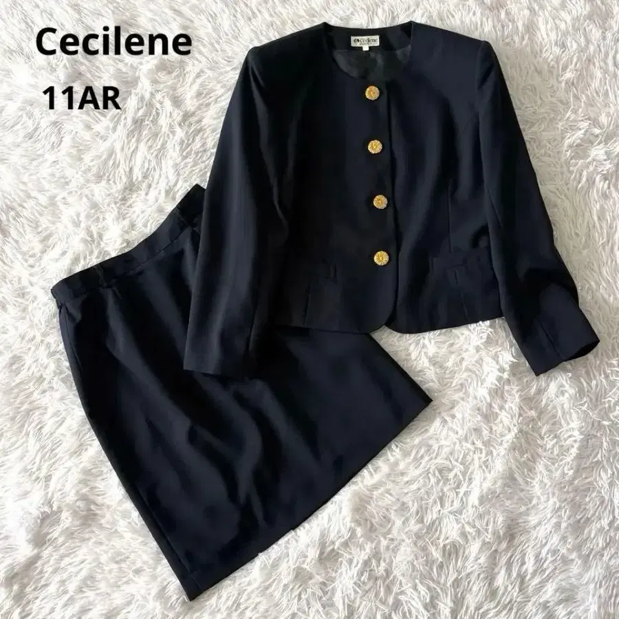 세시레느 스커트 수트 11호 골드 버튼 노카라 자켓 셋업