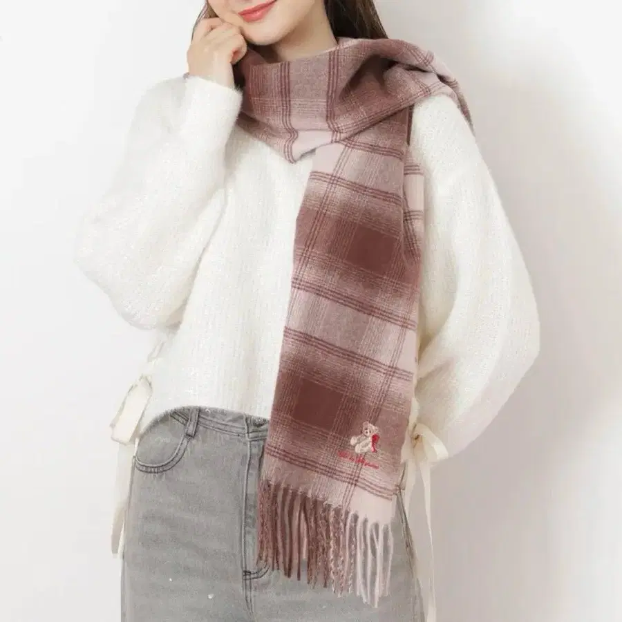 [새상품] 질 바이 질 스튜어트 Holiday 베어 자수 체크 스톨 핑크