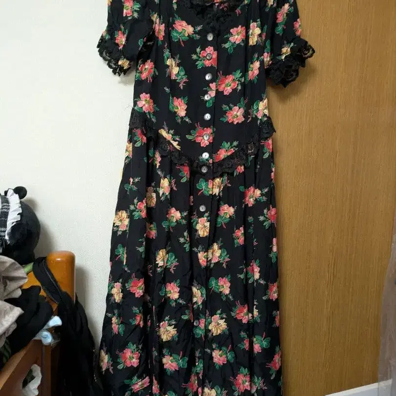 꽃무늬 원피스 구제 의류 블랙