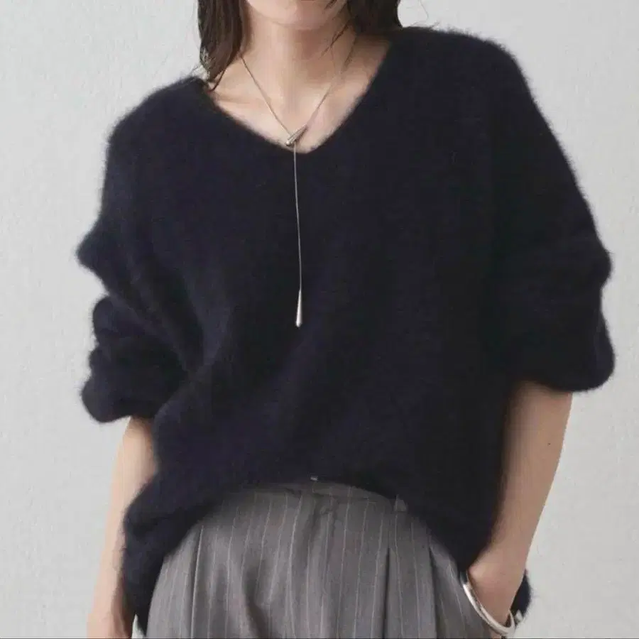 [택 포함 새상품] 라운지 드레스 FUR 캐시미어 V 니트 블랙