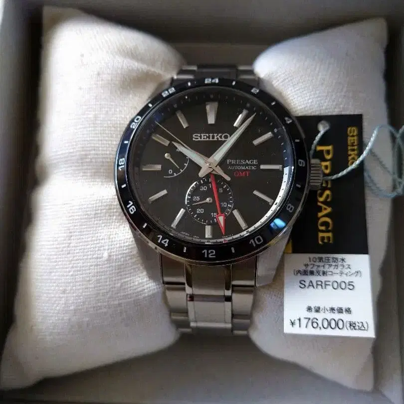 자동 번역되었어요. 원문보기[ 미사용 ] SEIKO 세이코 SARF005 PRESAGE 프레사지 블랙 다이얼 마(麻) 잎 무늬 샤프 엣지 시리즈 6R64-00C0 AUTOMATIC 오토매틱 GMT 파워 리저브