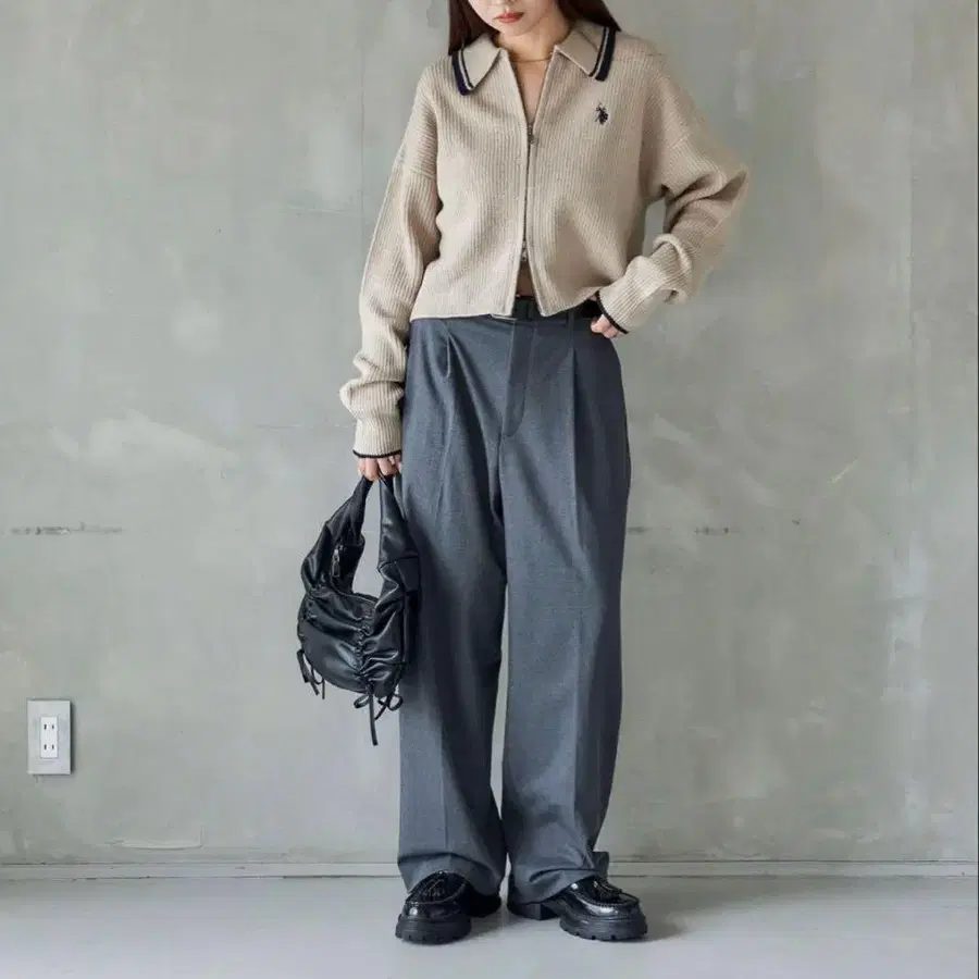 • [ U.S. POLO ASSN ] 카라 부착 샤기 볼륨 슬리브 니트