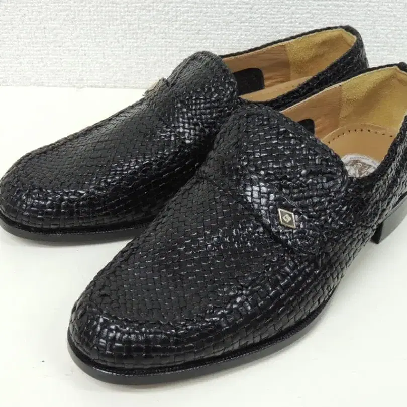 새상품 24.5cm 3E EEE 일본제 마렐리 MARELLI 마케 방식 인트레차트 가죽 뜨개질 로퍼 슬립온 가죽 신발 블랙 블랙 MARE3