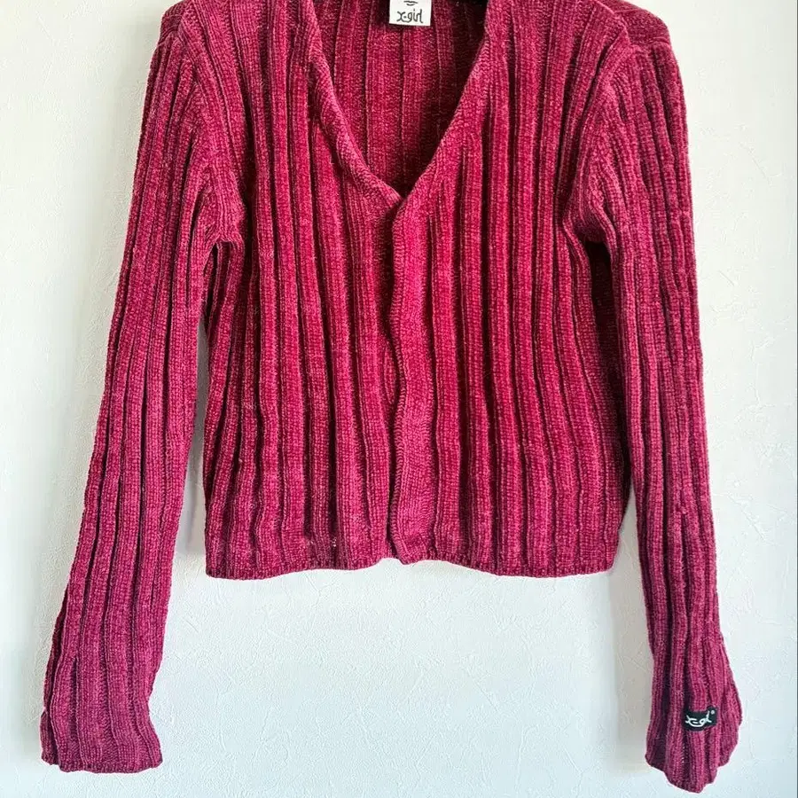 완판템 엑스걸 와인 레드 리브 니트 V넥 가디건
