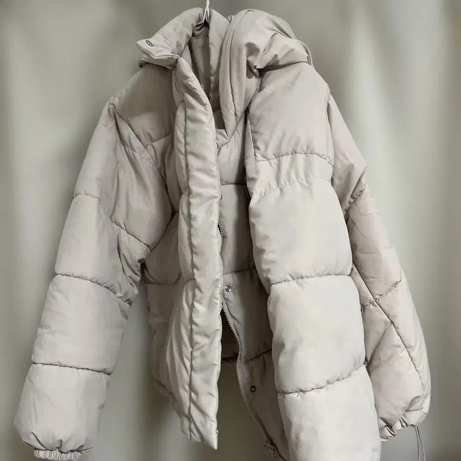 라이트 베이지 다운 자켓 후드 부착 바스락