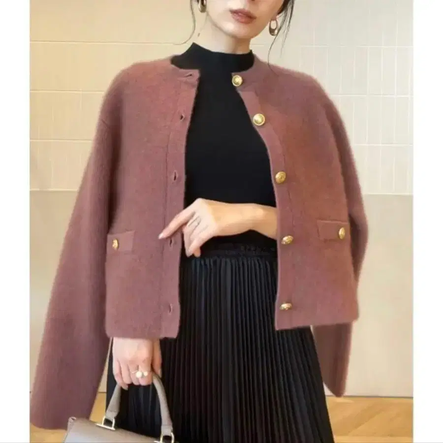 anuans 라쿤 블렌드 노카라 니트 자켓 핑크