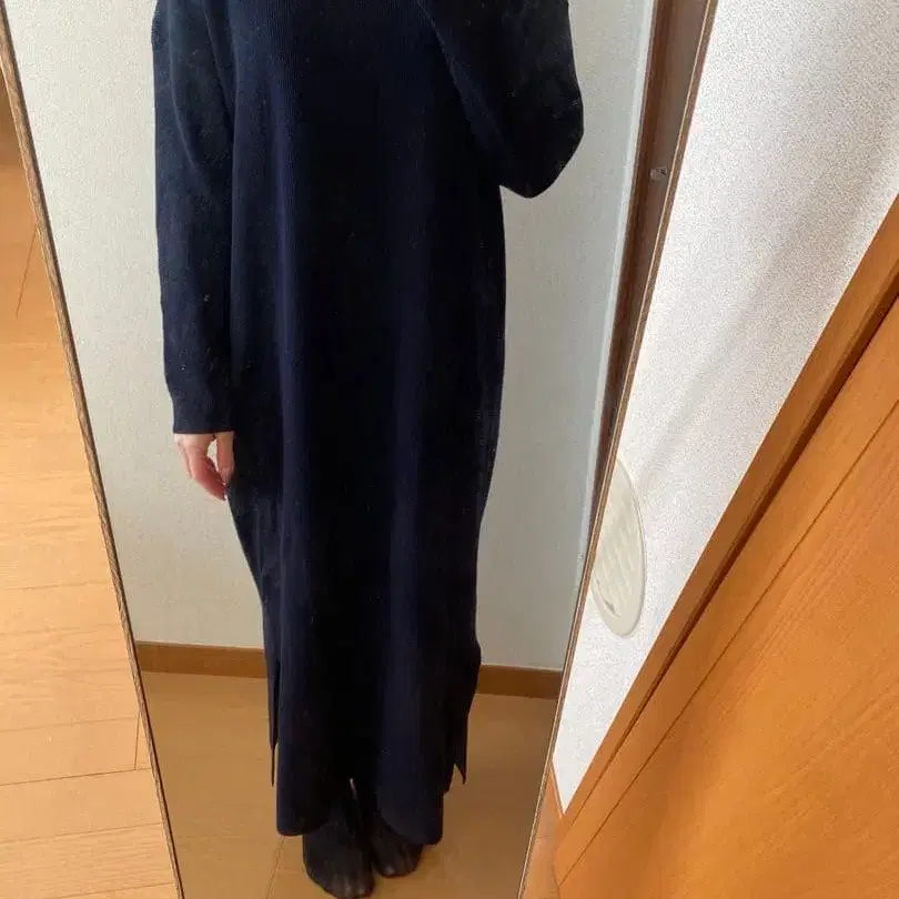 리에스 네이비 니트 롱 원피스 사이드 슬릿
