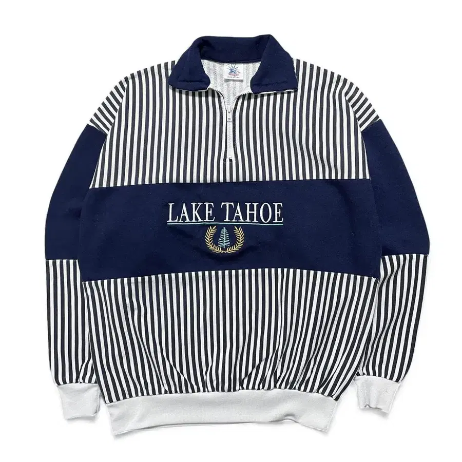 구제 의류 USA제 90S 빈티지 타호 호수 하프 지퍼 맨투맨 트레이닝복 하프 지퍼 자수 네이비 남성용 M BD3173