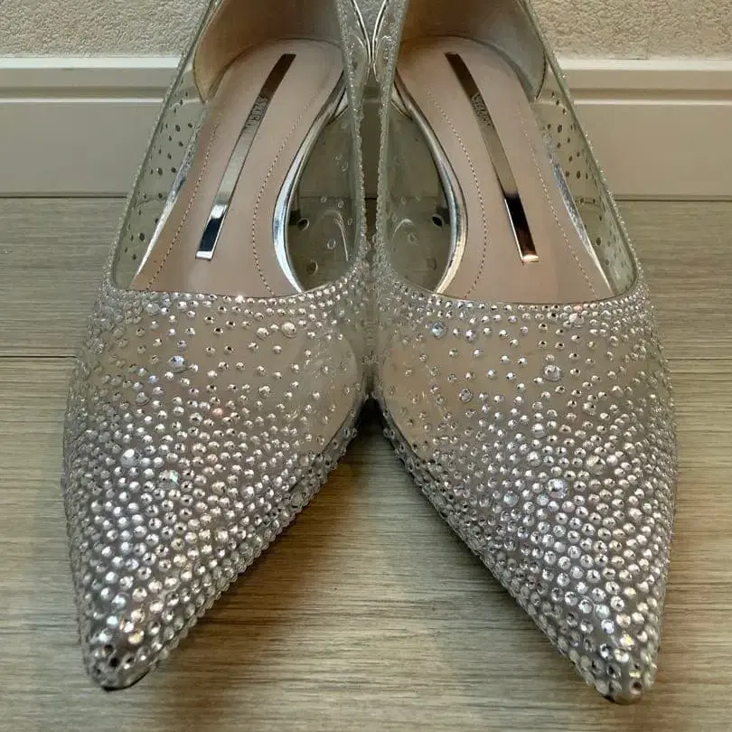 [컨디션 최상] 실버 스톤 장식 스틸레토 펌프스