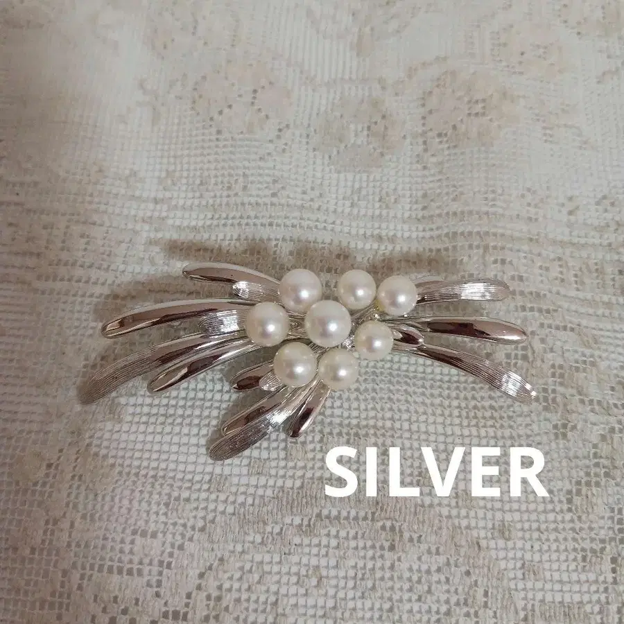 펄 8알 SILVER 브로치
