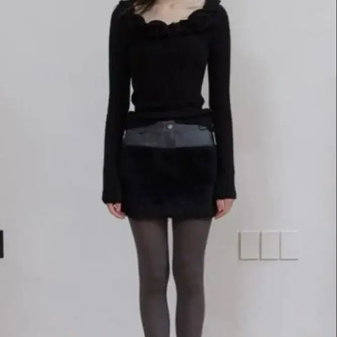 ASURA 가죽 퍼 믹스 스커트(BLACK)