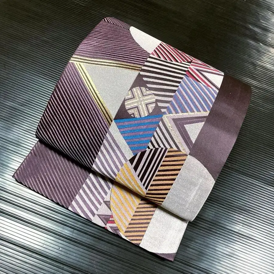 순수 실크 교토 후쿠로 오비 [ 줄무늬 원 삼각형 ]