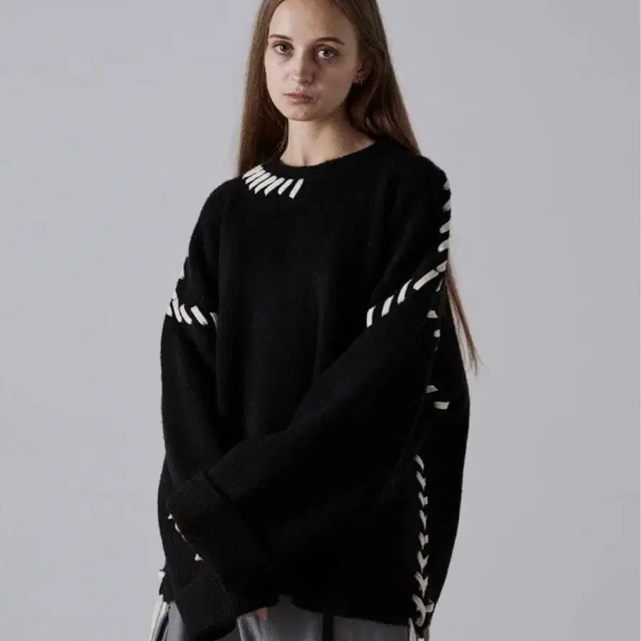 CLEL 클레일 니트 스웨터 핸드 스티치 드롭 숄더