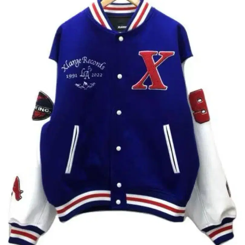 바시티 자켓 파랑/화이트 자수 로고 포함