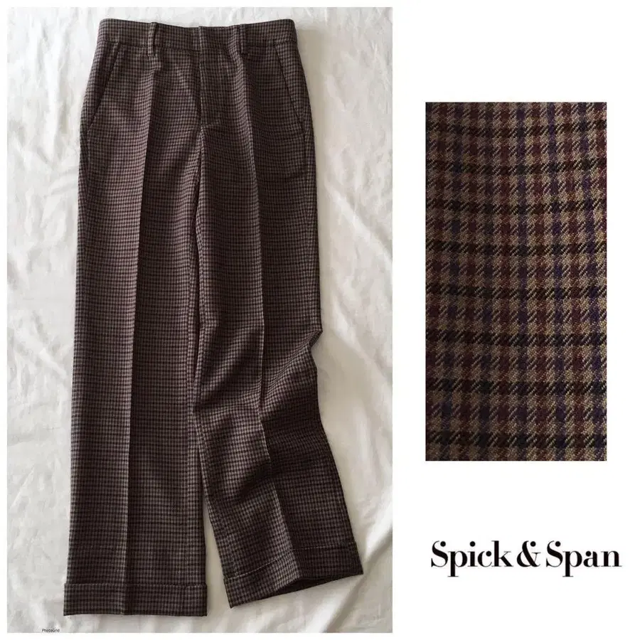 스픽 앤 스팬 배색 체크 울 와이드 팬츠 일본제