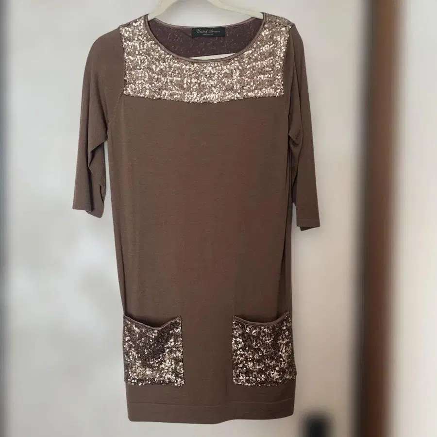 United Arrows 브라운 원피스 7부 소매 포켓 부착