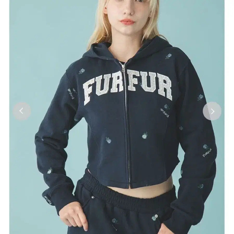 오리지널 크로스 스티치 장미 무늬 자수가 놓인 쭈리 프론트 오픈 후디. 프론트의 미니 꽃무늬 원단을 사용한 칼리지 로고 아플리케 자수가 악센트가 되어줍니다. 스커트에도 잘 어울리는 컴팩트한 실루엣이지만, 옆구리에 쭈리 절개를 넣어 신축성을 높여 착용감에도 신경 썼습니다.