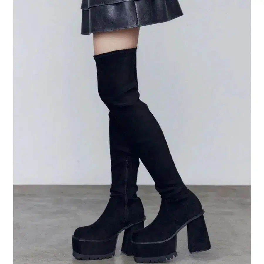 미사용품 EMODA 스퀘어 핏 롱 부츠 M 니하이 부츠 통굽