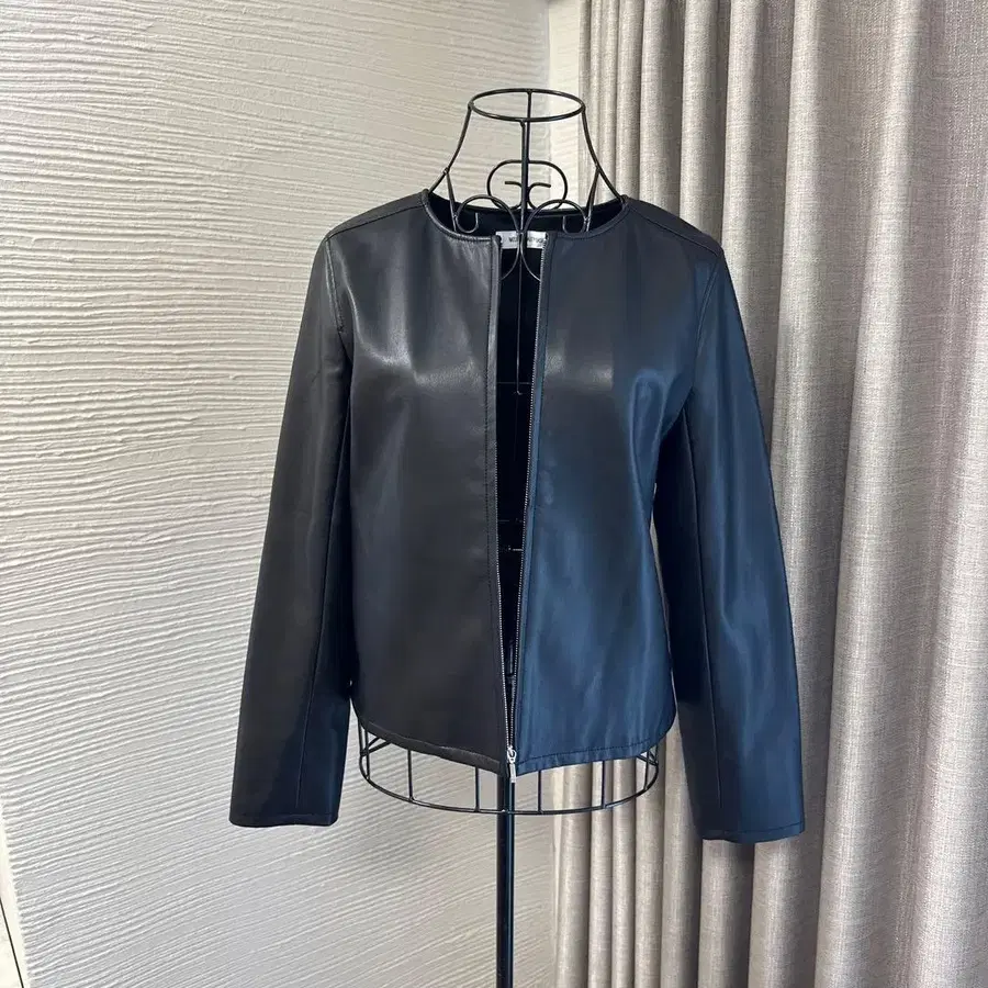 내추럴 뷰티 베이직 노카라 가죽 자켓 블랙 S
