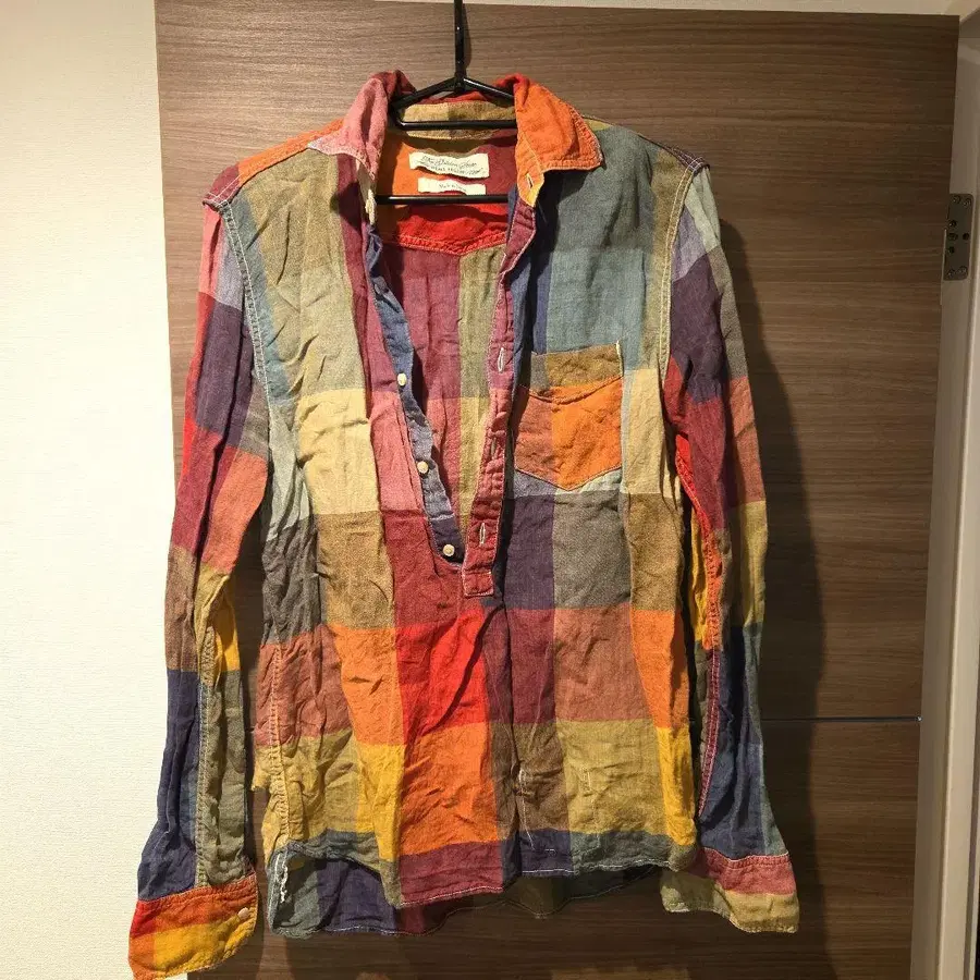 [ 레어 ] 멀티 컬러 체크 무늬 코튼 셔츠 구제 의류 구멍 있음