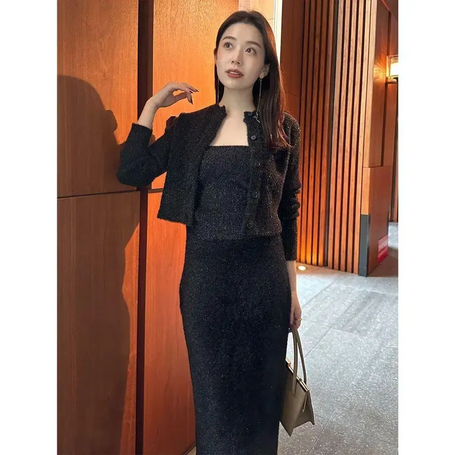 anuans 라메 니트 앙상블 스커트 세트