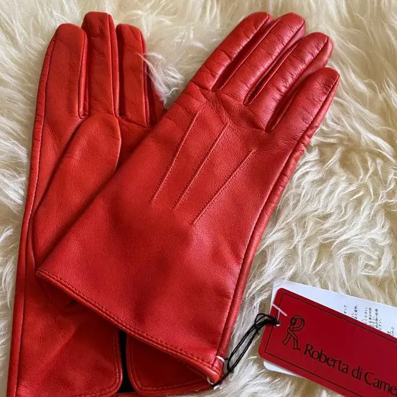 로베르타 디 카메리노 가죽 장갑 오렌지 레드 고급 천연 가죽