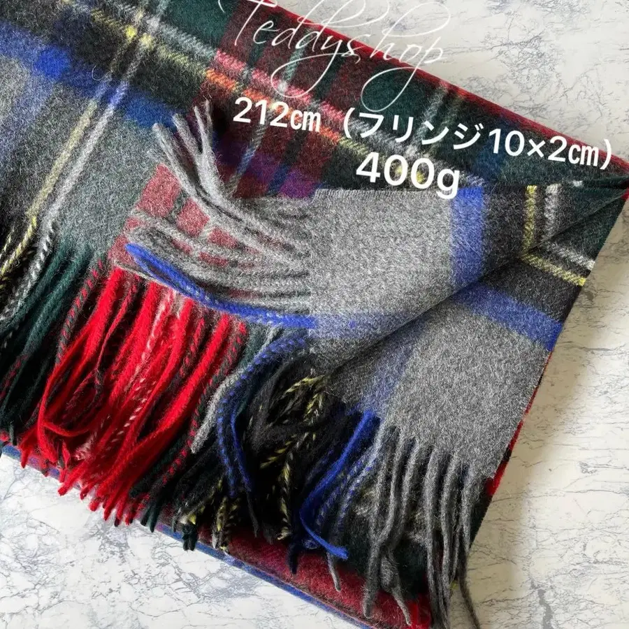 • 미사용 23구 캐시미어 100% 체크 무늬 스톨 대형 머플러 택 없음