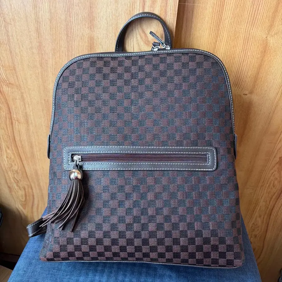 [새상품 레어] 말 갈기 체크 무늬 브라운 백팩 백 택 포함