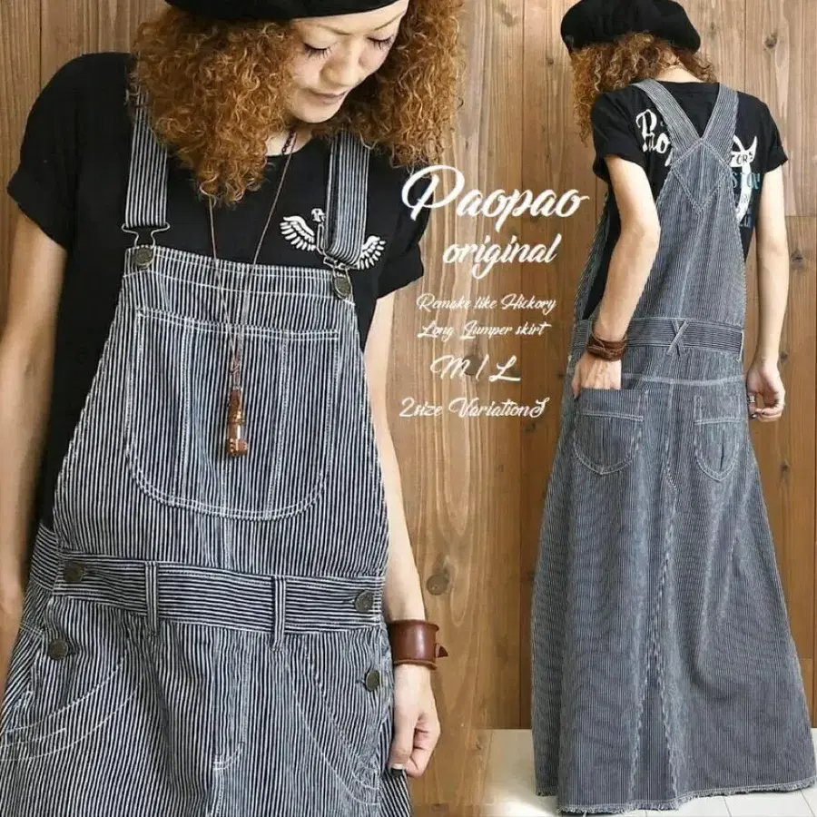 PAOPAO 히코리 롱 기장 오버롤 스커트