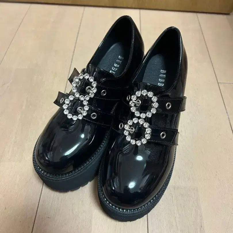 [ 새상품급 ] BUBBLES 더블 버클 신발 37 힐 9.5cm 통굽