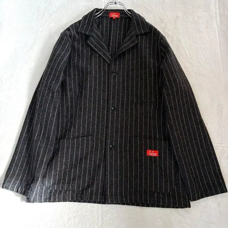 COOKMAN 쿠크만 라보 자켓 L 스트라이프 그레이 울 혼방