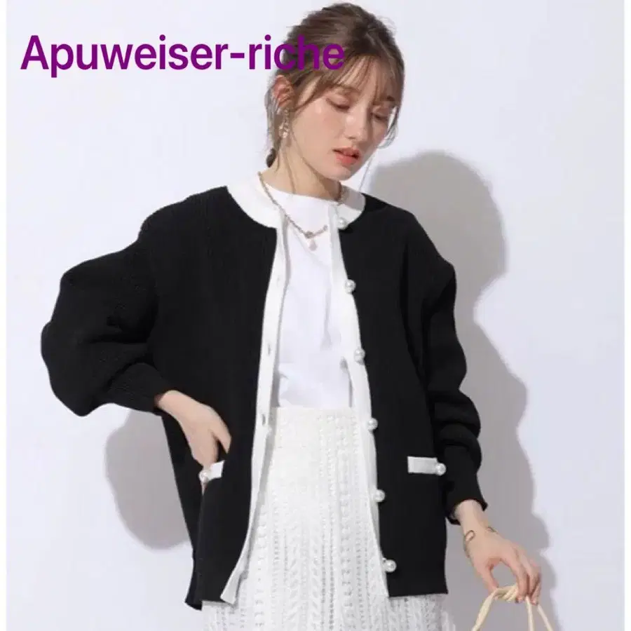 Apuweiser-riche 배색 코쿤 니트 가디건