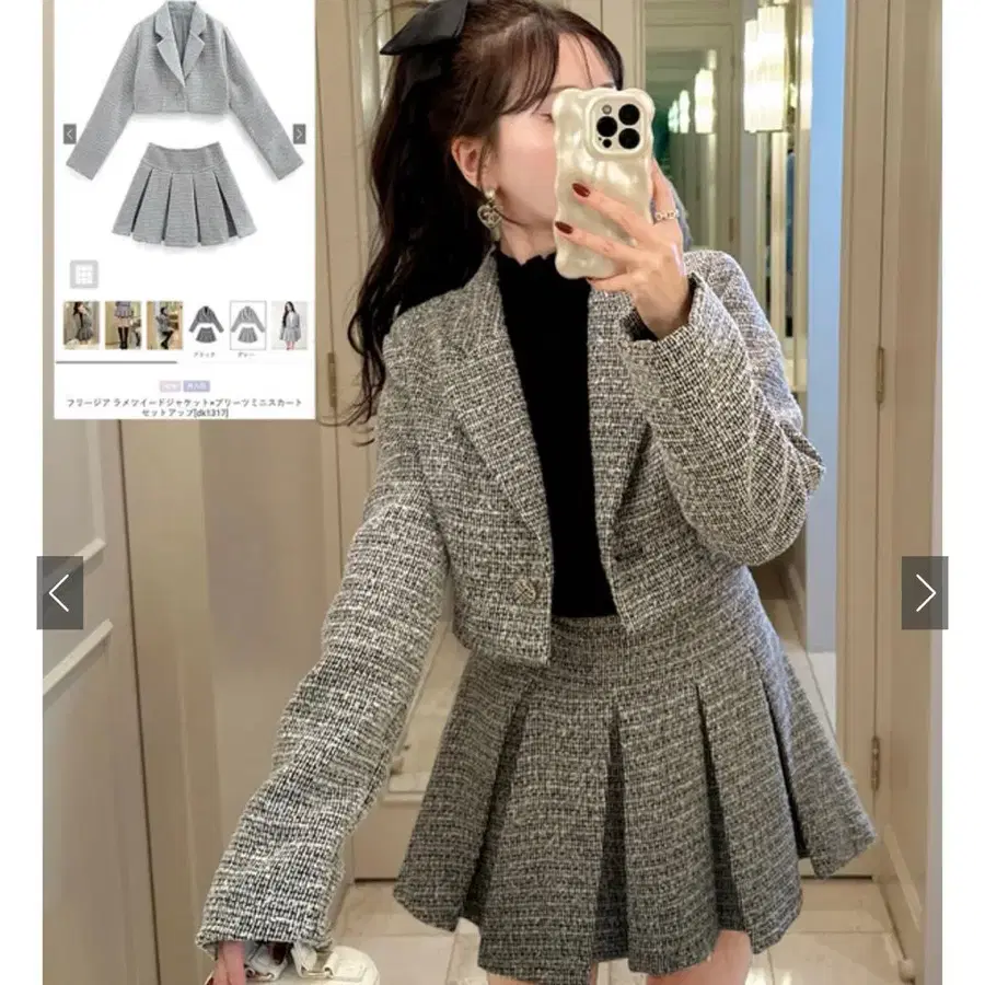 그레일 라메 트위드 자켓 x 플리츠 미니 스커트 셋업
