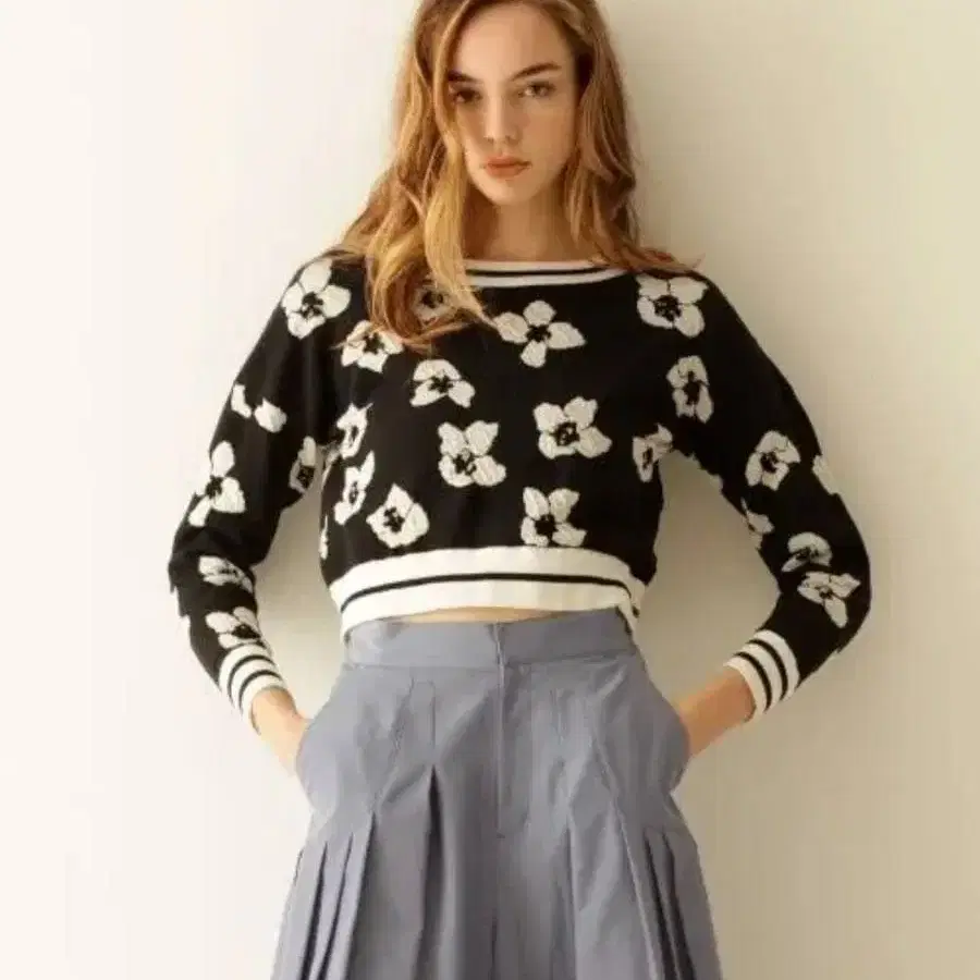그레이스 콘티넨탈 자카드 플라워 니트 숏 36