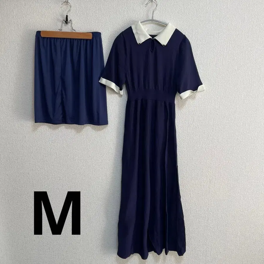 JUNOAH 반팔 바이컬러 세미 플레어 니트 원피스 (페치 스커트 세트)