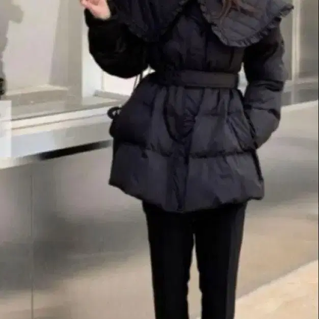 벌스데이 바쉬 프릴 재스민 컬러 코트 세일러 카라 벨트 블랙