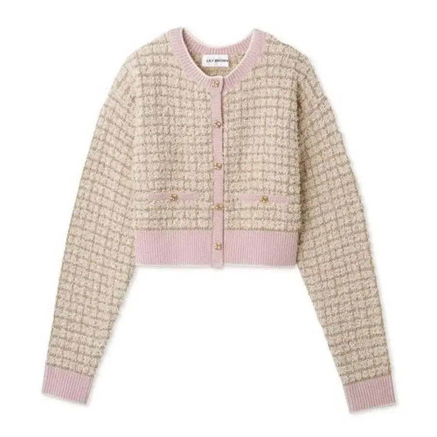 트위드 니트 숏 가디건 핑크