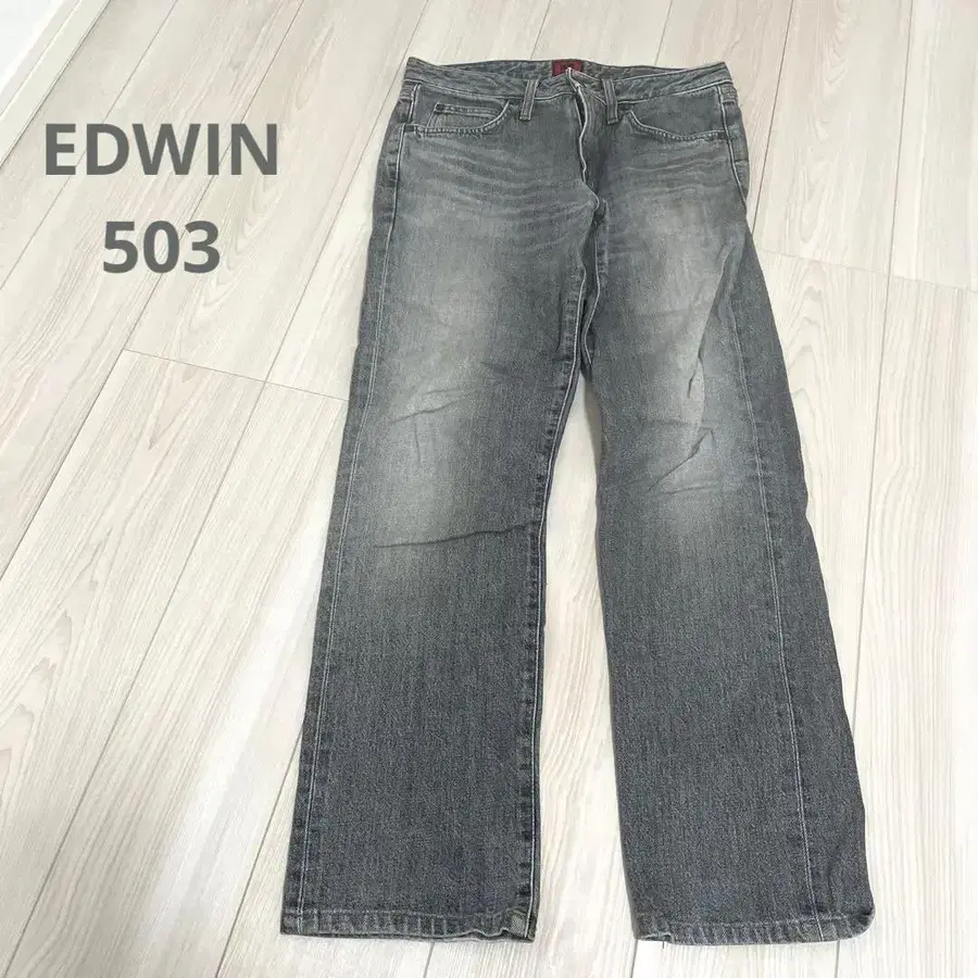 면 100%의 503 모델 데님 팬츠입니다. 심플한 디자인으로 스타일리시합니다.
