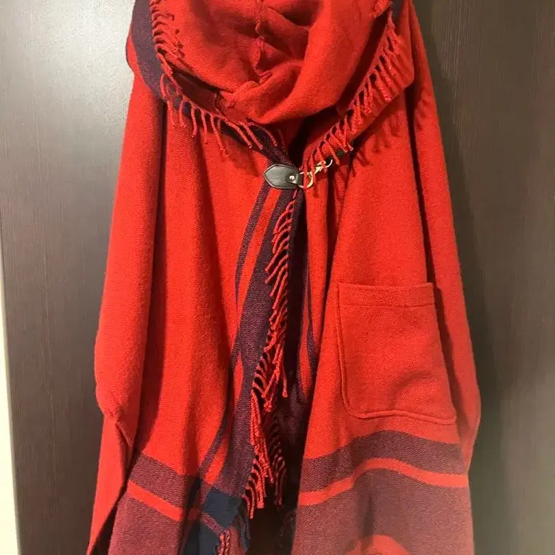 빨간색 프린지 장식 판초