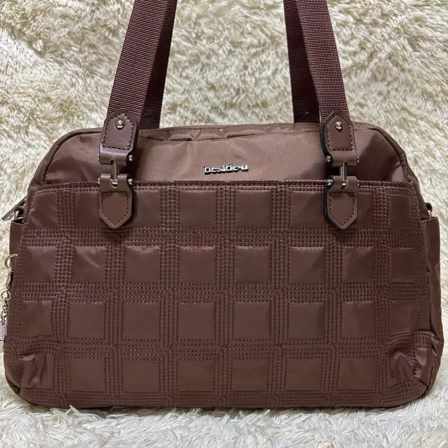 컨디션 최상 beside u 비사이유 나일론 토트백 브라운 대용량