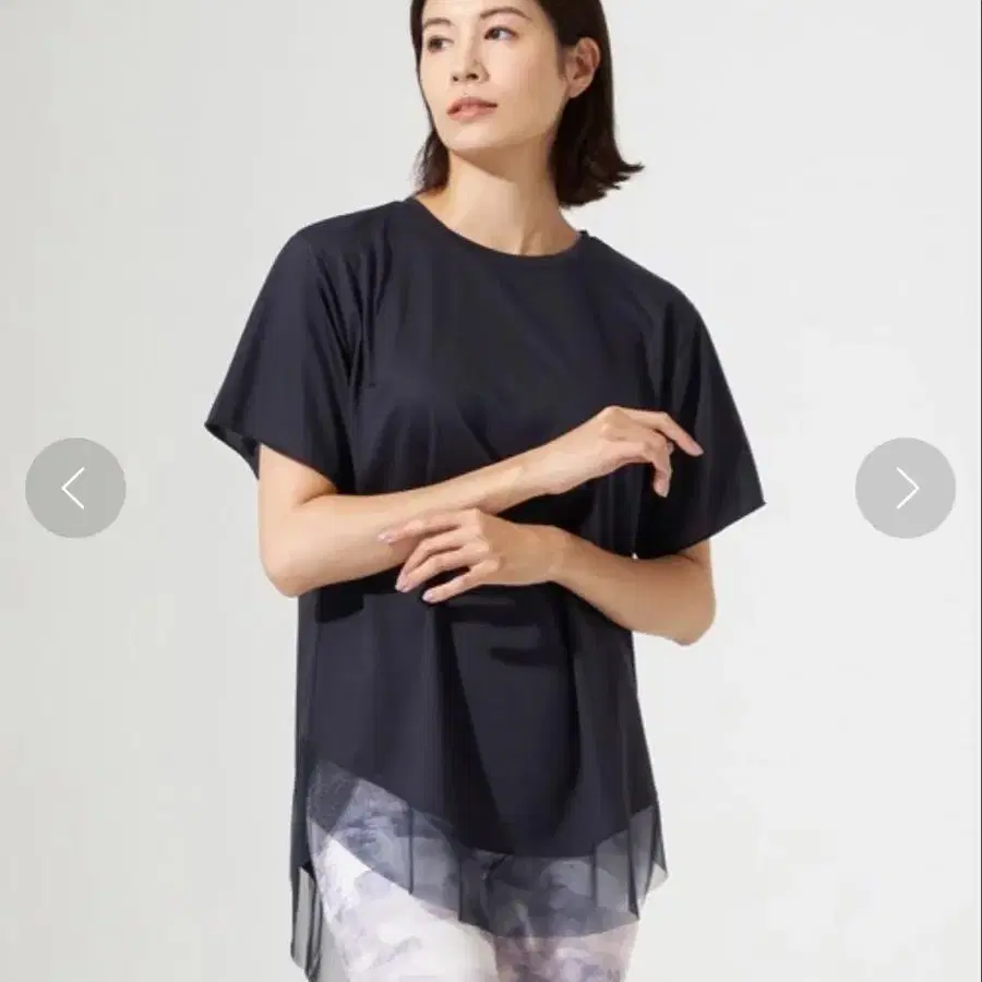 Chacott 튤 콤비 롱 T셔츠 블랙