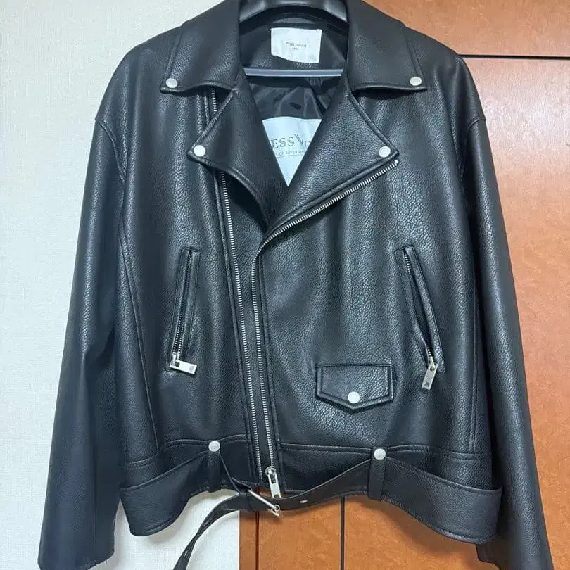 DRESS VOLUME 블랙 가죽 라이더 자켓